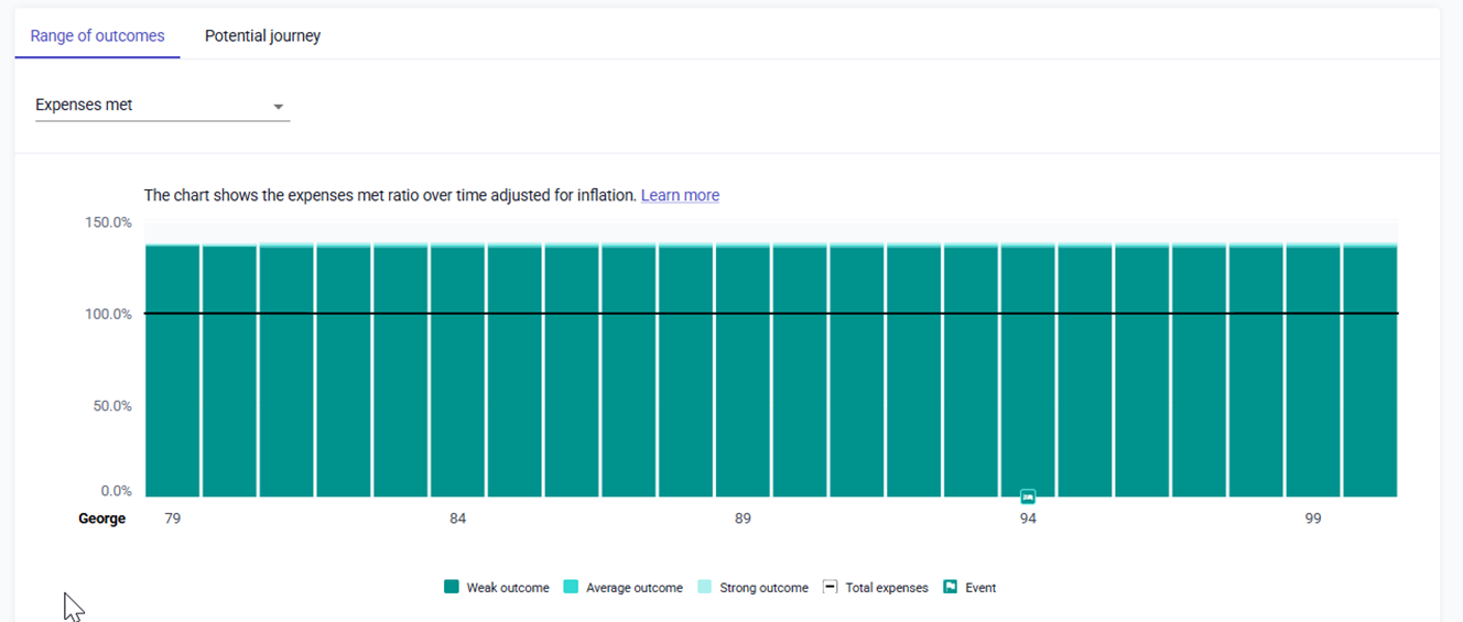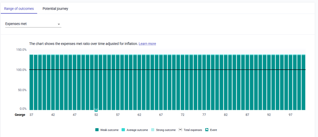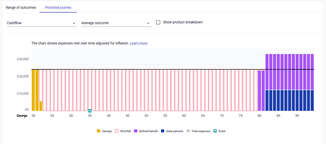 However, for younger clients, the maximum number of years we will show is 75, so for a client who is 20 the cashflow will finish currently at 95: